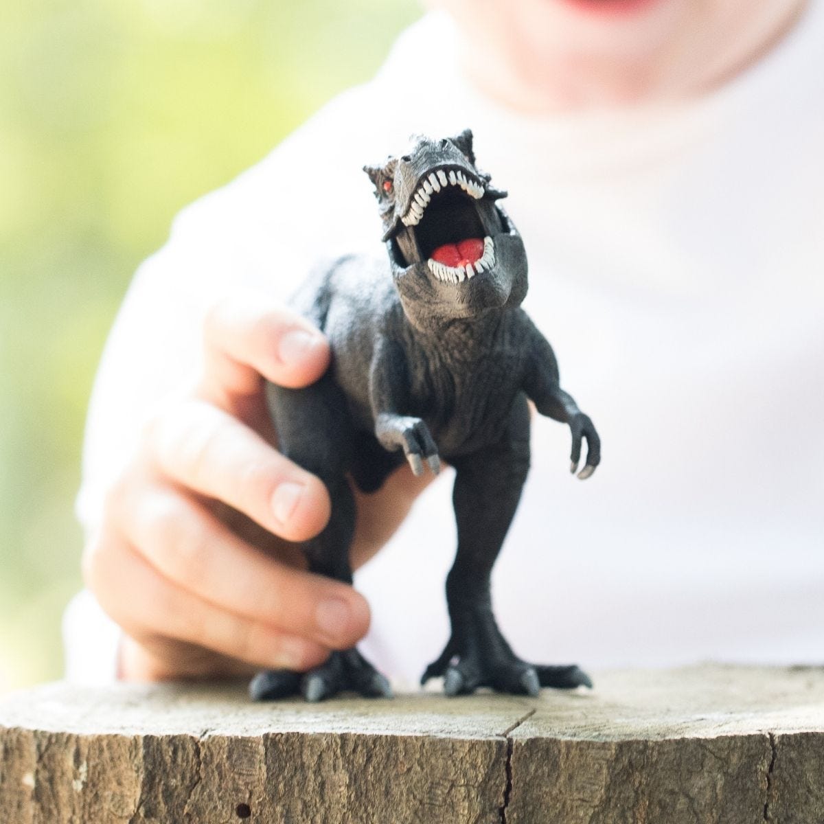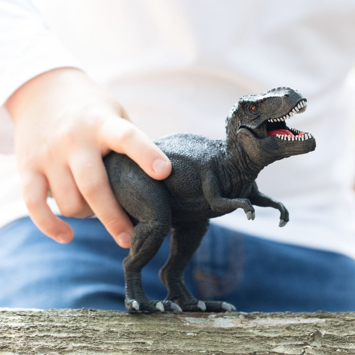 ¡Y zas! ¿No había algo ahí? ¿Una sombra negra? ¿Grande y peligrosa? No se puede saber con seguridad. El Black T-Rex de Schleich® Dinosaurs es el número uno en las carreras de velocidad contra animales de su especie. Y el más rápido en arrebatarte el último bocado de tu comida favorita. Y, como es negro, cuando mejor lo hace es por la noche.