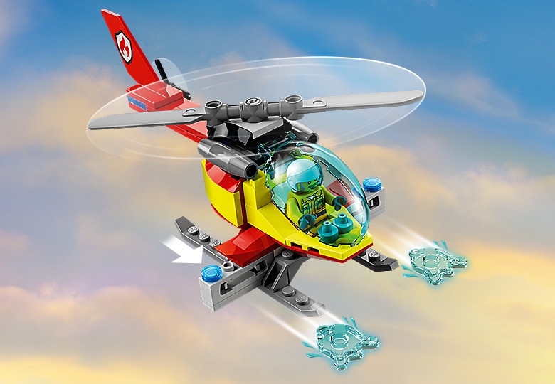 - Fun functions add to the play – Kids can shoot LEGO® water splat elements from the fire helicopter and water dart elements from the fire truck